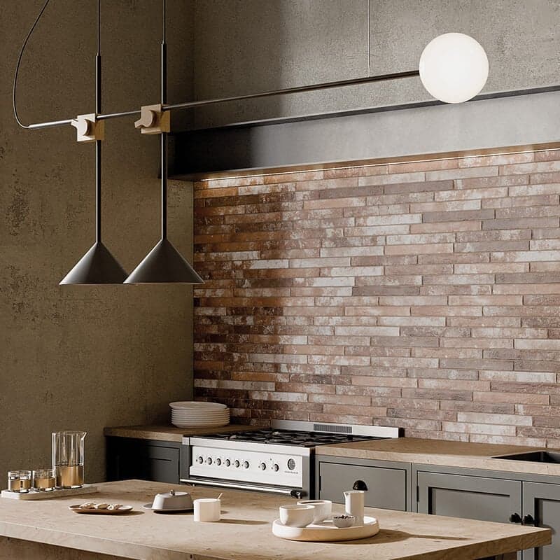 Penny rounds, hexagons, and glass blends that add depth and personality. Perfect as a full backsplash or as a feature strip behind the range. Available in glass, porcelain, and natural stone.